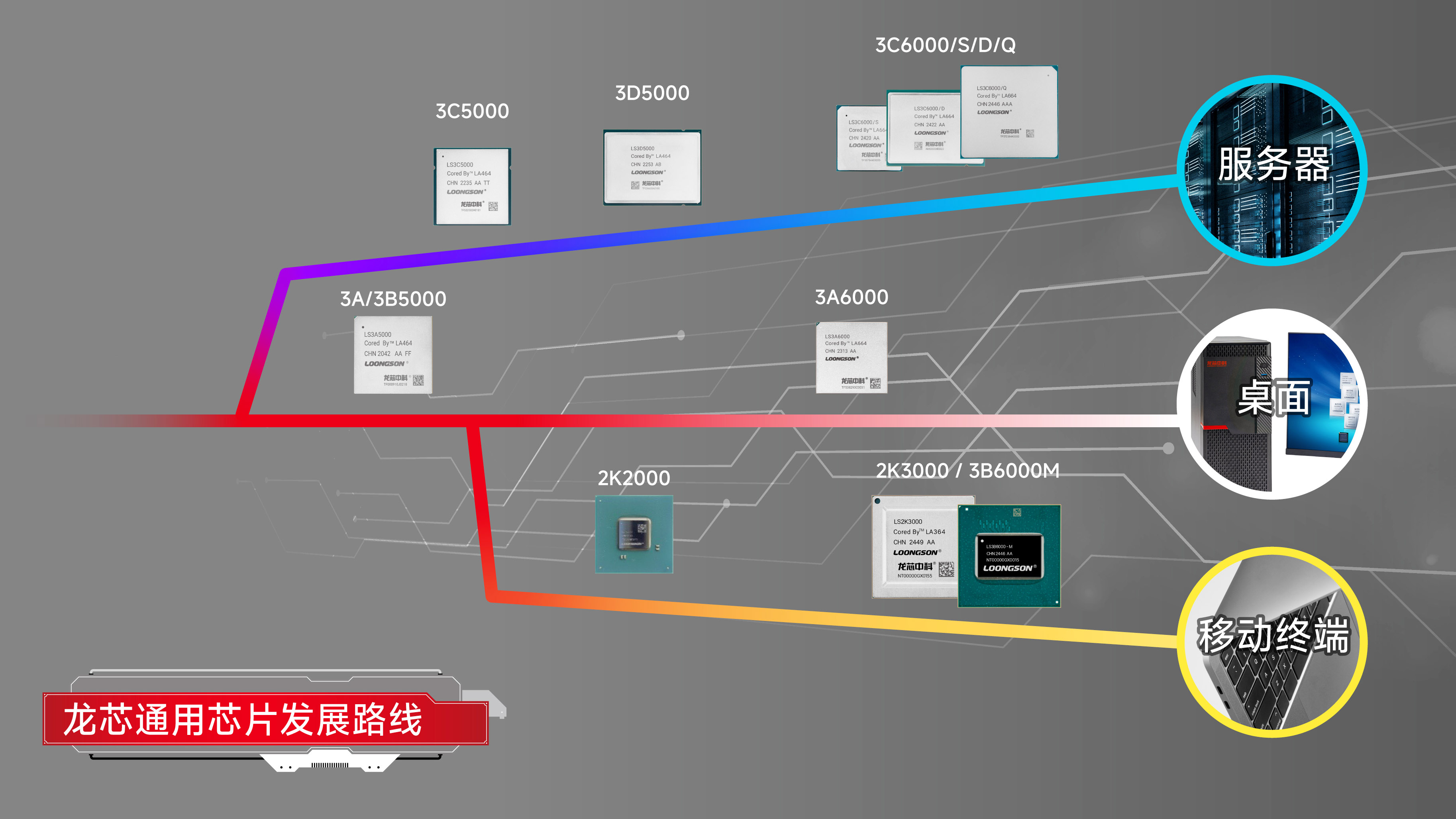 隨著龍芯2K3000/3B6000M的流片成功,龍芯通用CPU形成了桌面、服務(wù)器和終端三條線路產(chǎn)品的完整系列,能夠?yàn)椴煌I(lǐng)域提供高性能及高性價(jià)比的CPU芯片產(chǎn)品。