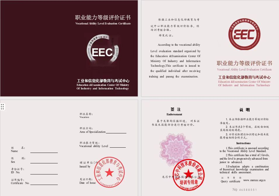 對經(jīng)學校有關部門推薦參加培訓的教師,完成學習后頒發(fā)32課時“培訓結(jié)業(yè)證書”。通過認證考試且成績合格的教師將獲得工信部教育與考試中心龍架構(gòu)職業(yè)能力等級證書及龍芯中科的龍芯生態(tài)專業(yè)人才證書,對參加培訓獲得證書的教師,所在學校應承認其接受培訓的經(jīng)歷,計入繼續(xù)教育學時。