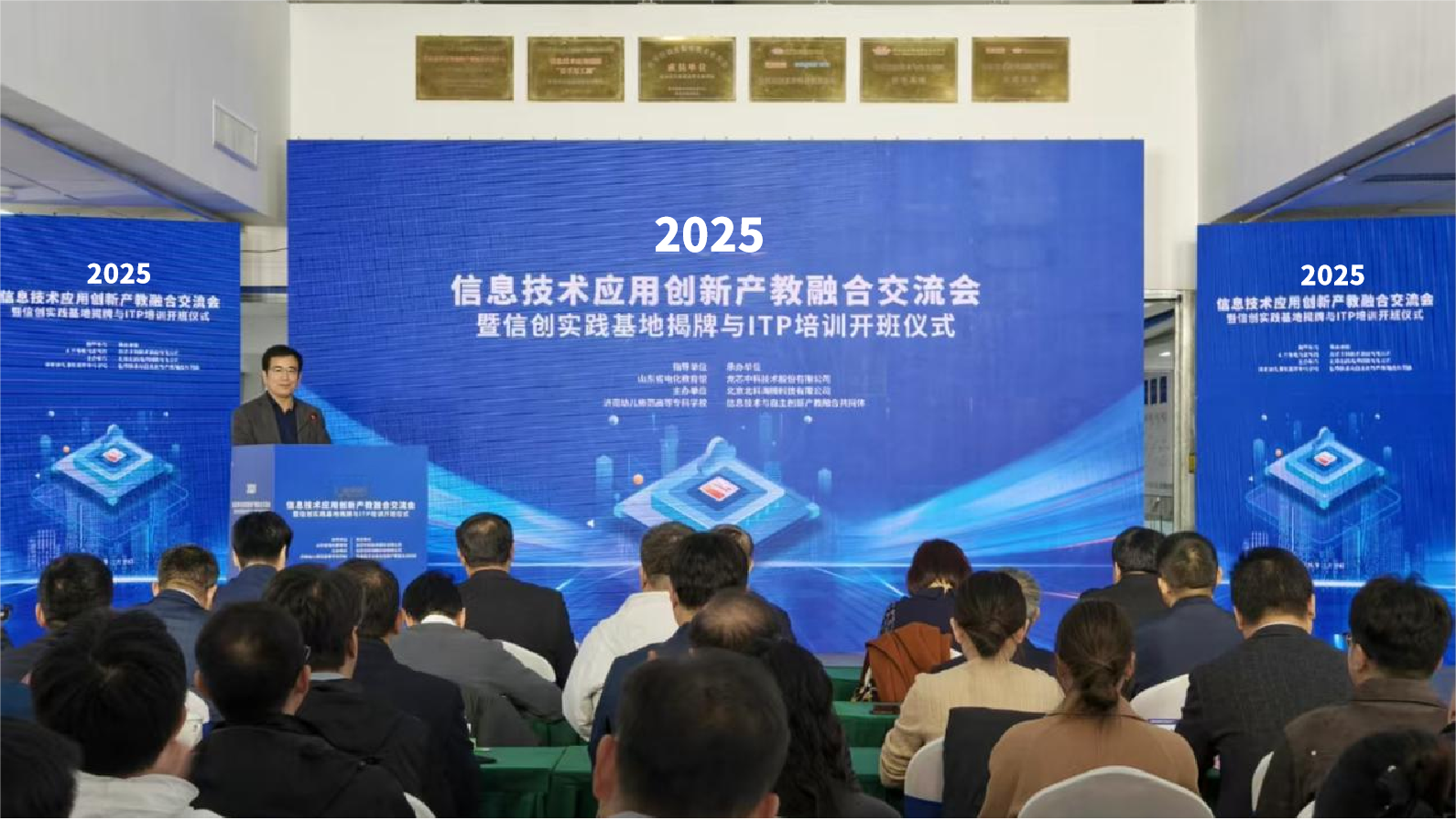 龍芯中科多年來一直致力于推動(dòng)政、校、企三方在信創(chuàng)教育中的深化合作,在教育部教育管理信息中心的支持下,積極展開各類信息技術(shù)應(yīng)用創(chuàng)新人才培養(yǎng)及實(shí)踐活動(dòng)。借助此次會(huì)議,成立了基于LoongArch技術(shù)路線的“信息技術(shù)應(yīng)用創(chuàng)新產(chǎn)教融合實(shí)踐中心”、“山東省信息技術(shù)應(yīng)用創(chuàng)新適配驗(yàn)證中心”、“全民信息技術(shù)應(yīng)用創(chuàng)新素養(yǎng)科普教育基地”,并成功舉行由教育部教育管理信息中心權(quán)威組織的信息技術(shù)應(yīng)用創(chuàng)新專業(yè)人員(ITP)培訓(xùn)開班儀式。